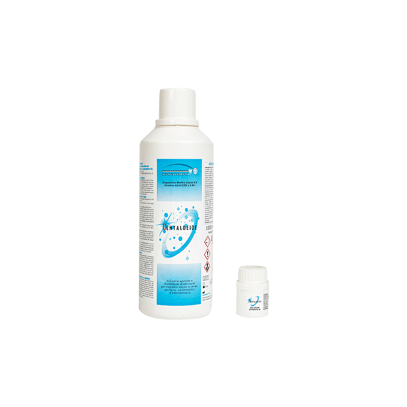 Dentaldeide è soluzione disinfettante a base di glutaraldeide 2% indicata per la disinfezione di alto livello e sterilizzazione a freddo di dispositivi medici, strumenti chirurgici, endoscopi, etc. Per uso ospedaliero e per ambulatori medici.